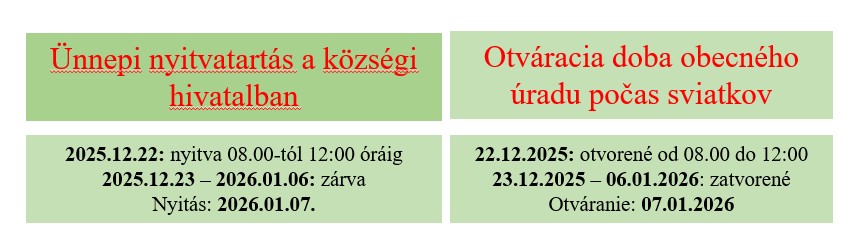 Az ebedi községi hivatal nyitvatartása az ünnepi időszakban